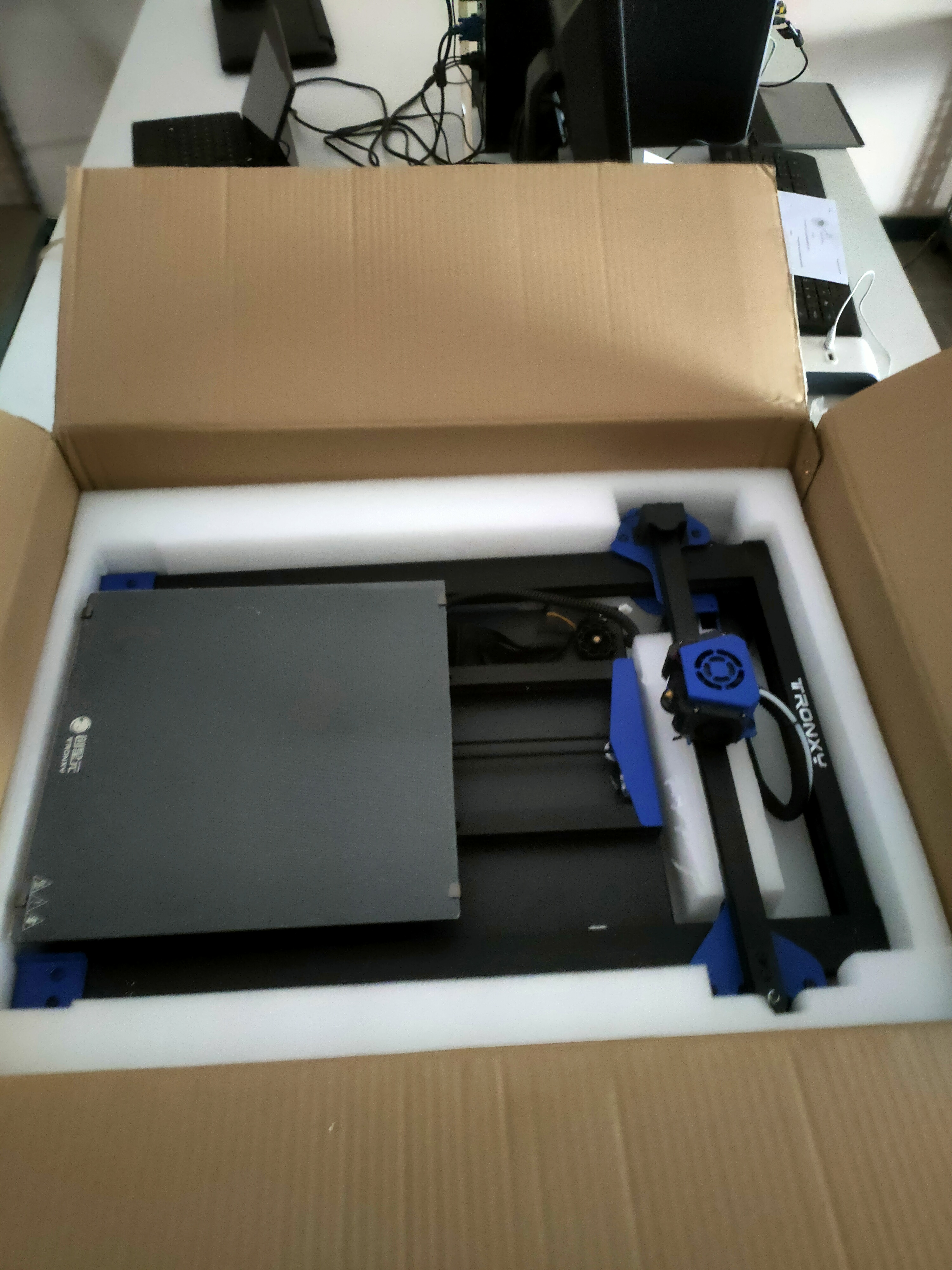 Le colis est de taille moyenne, vue l’imprimante 3D, c’est un carton compact, facile à transporter, le contenu est bien rangé et de bonne qualité générale. Aucun problème pour la livraison, pas de taxe en douane supplémentaire, car l’entrepôt est en Allemagne, donc en Europe et donc pas de surprise de ce côté là. Livraison rapide et suivie, pas de risque de le perdre. Nous avons reçu depuis beaucoup de colis pour installer le libre-service gratuit d’imprimantes 3D et on n’a eu aucun problème pour la réception de colis.
