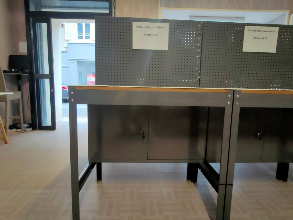J’ai commencé à développer la vitrine des créations, pour permettre aux créateurs d’avoir la possibilité de vendre leurs créations gratuitement, d’avoir un petit stand propre à eux, avec un casier en bas qui se ferme à clé.