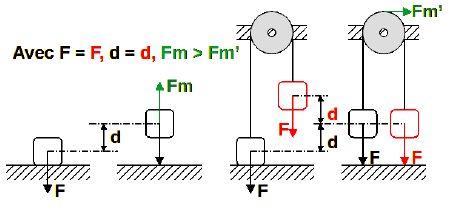 Moins ambigu : La levée d’une charge par poulie avec contrepoids facilite la levée du poids.