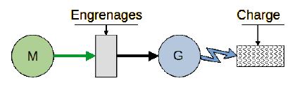 > Avec le système d’engrenages entre le moteur et l’alternateur, le couple réactif ne pourrait plus s’opposer à la motricité. Le moteur n’assumerait que les pertes mécaniques, bien que l’alternateur soit en charge. Cela faciliterait le fonctionnement de la charge électrique.