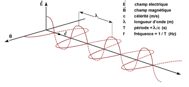 Un champ électromagnétique représente dans l’espace la force électromagnétique qu’exercent des particules chargées. Il est composéd ’une onde électrique et magnétique et donne naissance à une onde électromagnétique se propageant à la vitesse de la lumière.
