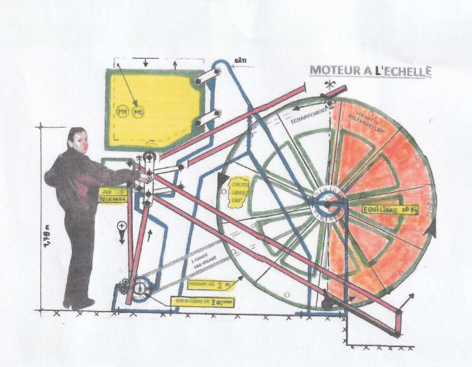 Le Moteur à gravité : après quinze ans de recherches passionnantes et utiles sur le relevage de masse à « zéro kilo » par équilibrage, concrétisation du moteur.